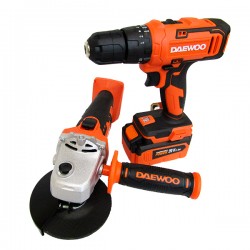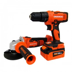 Super Pack DAEWOO DAAG2000Li + DACD2000Li: combinación ideal de potencia y practicidad. La amoladora angular ofrece 20V y 7500 rpm con disco de 115 mm, perfecta para cortes y desbastes precisos. El taladro de litio alcanza hasta 1350 rpm, con mandril de 10 mm sin llave, luz LED y ajuste de torsión 18+1+1+1. Incluye batería de 3.0 Ah, cargador rápido de 2.0 A y gancho para cinturón. Todo lo que necesitás para tus trabajos de bricolaje o profesionales en un solo pack.